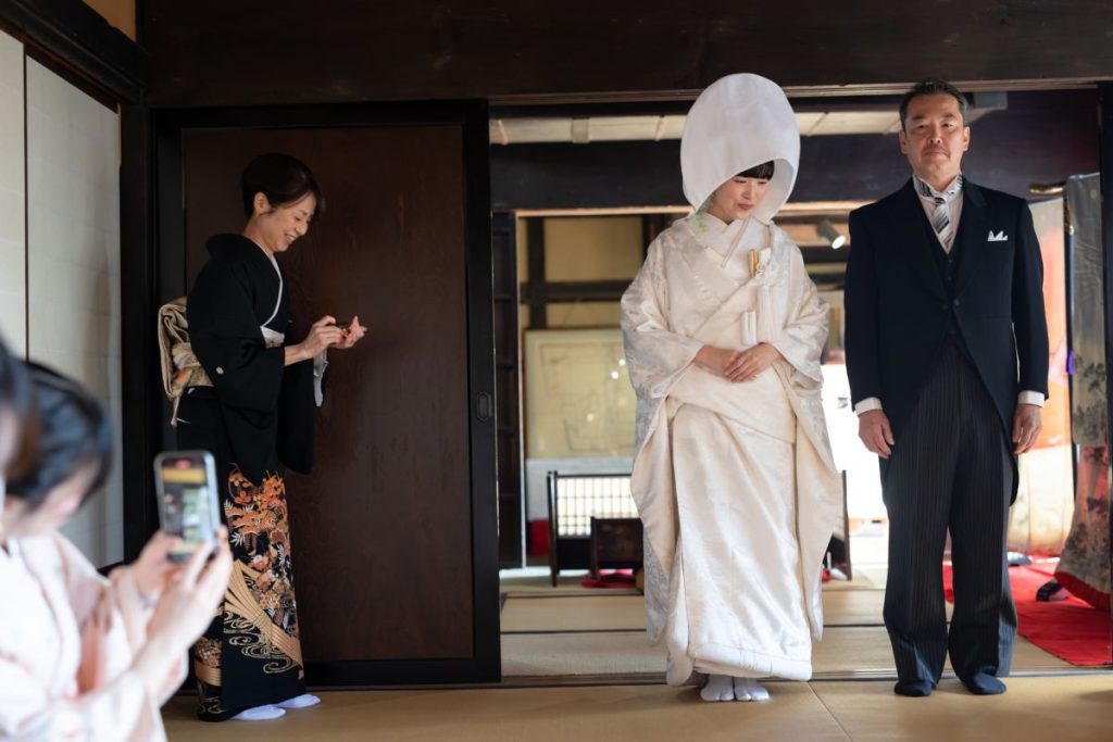 襖が開き、花嫁が一歩踏み出す。